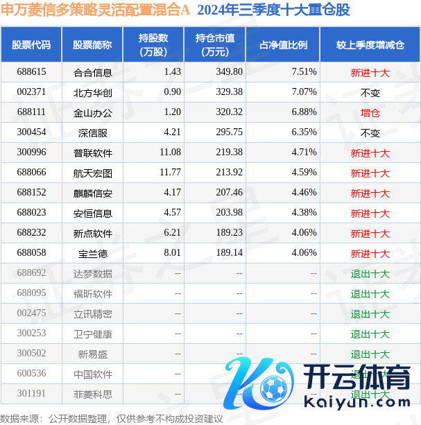 申万菱信多政策纯确凿立混杂A为混杂型-纯真基金,凭据最新一期基金季报知道,该基金财富确立:股票占净值比90.4%,无债券类财富,现款占净值比8.53%。基金十大重仓股如下: