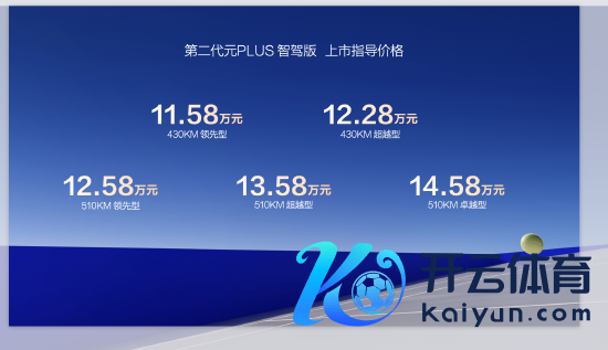 新浪科技讯 3月5日晚间音信,比亚迪第二代元PLUS智驾版上市,全系标配天使之眼 C - 高阶智驾三目版(DiPilot 100)开云体育(中国)官方网站,新车五个款型,售价为11.58-14.58万元。