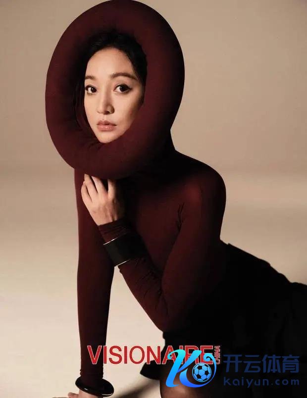 周迅身着酒红色紧身衣搭配环形头饰,造型时尚。