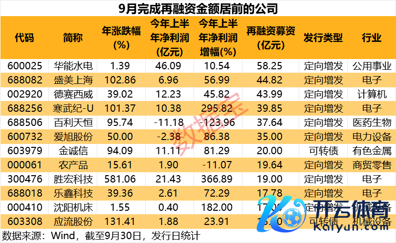 9月份A股再融资完成畛域环比增近30% 6家公司募资超35亿元欧洲杯体育9月份A股再融资完成畛域环比增近30% 6家公司募资超35亿元