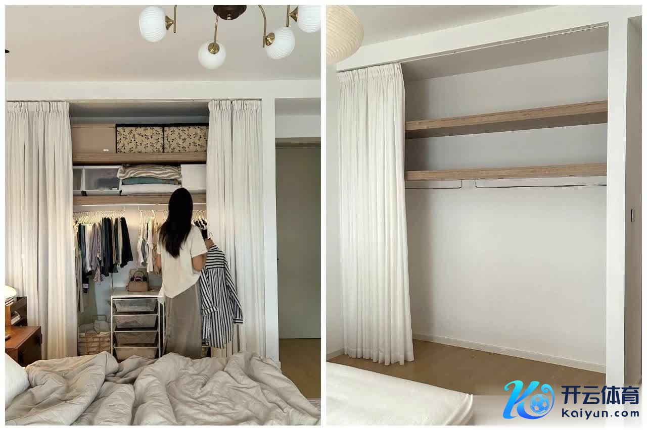 金属衣柜无须复杂柜体,唯有两块木板作念陡立隔层,中间装金属衣杆,再搭配几层金属置物架,终末挂个布帘或装个推拉门,就能解决收纳问题。莫得板材甲醛,收纳生动,思加层架、改衣杆高度都简易。