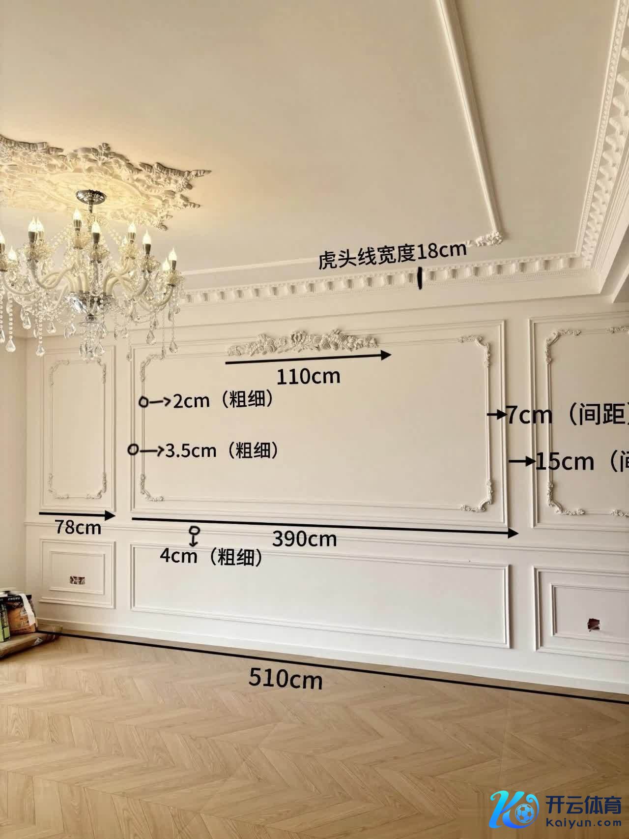 先把墙面作念冲筋找平,确保墙面平整;再买粗细不同的PU线条和角花,按护墙板的形状,在墙面上钉好线条框架,比如底下作念半墙线条,上头用细线条勾画造型,边际装上角花遮拦。终末刷上和墙面同色的油漆,干透后和真护墙板险些没辩认,程序氛围感平直拉满。