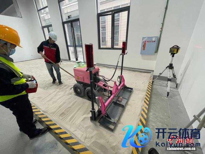 图为竞赛现场,建筑机器东谈主对大地进行抹平功课。重庆市住房和城乡开拓委员会供图